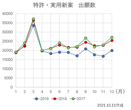 みなさま、こんにちは。 https://twitter.com/b8L18UnY7nPd5NC 今回は、特許出願が一年のうちで最も多くなる時期について調べてみました。よく特許事務所の年度末(3月)は忙しいという話を聞きますよね。やはり、3月に集中しているのでしょうか? ざっくり…